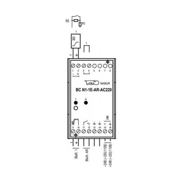 Блок сопряжения BC N1-1E-AR-AC220-C предназначен для питания индуктивных бесконтактных особовзрывобезопасных датчиков и преобразования слаботочного аналогового сигнала, поступающего от датчика, в сигнал оптрона для управления исполнительными устройствами.Блок сопряжения обеспечивает:1. Гальваническую развязку датчика с исполнительным устройством.2. Преобразование слаботочного сигнала датчика в выходной сигнал оптрона для управления исполнительным устройством с одновременной индикацией замкнутого состояния выхода.3. Инверсию состояния выхода канала установкой перемычки.4. Контроль исправности датчика и линии связи с датчиком (КЗ, обрыв провода).5. Световую индикацию и размыкание выходов рабочего канала при обнаружении в ней неисправности.6. Формирование сигнала “АВАРИЯ” и размыкание контактов аварийного канала при неисправности в рабочем канале.Сертификат соответствия № РОСС RU.ГБ04.В01396 от 21.04.2010г.Разрешение Гостехнадзора России № РРС 00-041196 от 22.11.2010г.