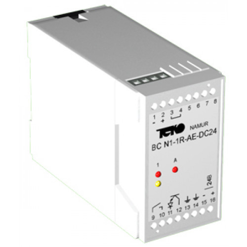 Блок сопряжения BC N1-1R-AE-AC220-C предназначен для питания индуктивных бесконтактных особовзрывобезопасных датчиков и преобразования слаботочного аналогового сигнала, поступающего от датчика, в сигнал оптрона для управления исполнительными устройствами.Блок сопряжения обеспечивает:1. Гальваническую развязку датчика с исполнительным устройством.2. Преобразование слаботочного сигнала датчика в выходной сигнал оптрона для управления исполнительным устройством с одновременной индикацией замкнутого состояния выхода.3. Инверсию состояния выхода канала установкой перемычки.4. Контроль исправности датчика и линии связи с датчиком (КЗ, обрыв провода).5. Световую индикацию и размыкание выходов рабочего канала при обнаружении в ней неисправности.6. Формирование сигнала “АВАРИЯ” и размыкание контактов аварийного канала при неисправности в рабочем канале.Сертификат соответствия № РОСС RU.ГБ04.В01396 от 21.04.2010г.Разрешение Гостехнадзора России № РРС 00-041196 от 22.11.2010г.