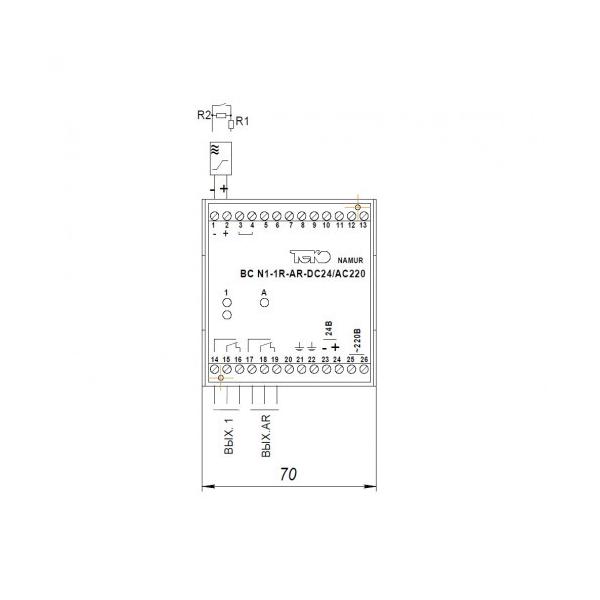 Блок сопряжения NAMUR BC N1-1R-AR-DC24/AC220 предназначен для питания индуктивных бесконтактных особовзрывобезопасных выключателей (датчиков) с видом взрывозащиты 0ExiaIICT6 "искробезопасная электрическая цепь" по ГОСТ 12.2.020-76 и для преобразования слаботочного аналогового сигнала, поступающего от датчика, в сигнал реле для управления исполнительными устройствами промышленной автоматики.