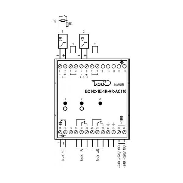 Блок сопряжения BC N2-1E-1R-AR-AC110 предназначен для питания индуктивных бесконтактных особовзрывобезопасных датчиков и преобразования слаботочного аналогового сигнала, поступающего от датчика, в сигнал оптрона для управления исполнительными устройствами.Блок сопряжения обеспечивает:1. Гальваническую развязку датчика с исполнительным устройством.2. Преобразование слаботочного сигнала датчика в выходной сигнал оптрона для управления исполнительным устройством с одновременной индикацией замкнутого состояния выхода.3. Инверсию состояния выхода канала установкой перемычки.4. Контроль исправности датчика и линии связи с датчиком (КЗ, обрыв провода).5. Световую индикацию и размыкание выходов рабочего канала при обнаружении в ней неисправности.6. Формирование сигнала “АВАРИЯ” и размыкание контактов аварийного канала при неисправности в рабочем канале.Сертификат соответствия № РОСС RU.ГБ04.В01396 от 21.04.2010г.Разрешение Гостехнадзора России № РРС 00-041196 от 22.11.2010г.