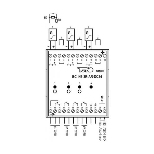 Блок сопряжения BC N3-3R-AR-DC24 предназначен для питания индуктивных бесконтактных особовзрывобезопасных датчиков и преобразования слаботочного аналогового сигнала, поступающего от датчика, в сигнал оптрона для управления исполнительными устройствами.Блок сопряжения обеспечивает:1. Гальваническую развязку датчика с исполнительным устройством.2. Преобразование слаботочного сигнала датчика в выходной сигнал оптрона для управления исполнительным устройством с одновременной индикацией замкнутого состояния выхода.3. Инверсию состояния выхода канала установкой перемычки.4. Контроль исправности датчика и линии связи с датчиком (КЗ, обрыв провода).5. Световую индикацию и размыкание выходов рабочего канала при обнаружении в ней неисправности.6. Формирование сигнала “АВАРИЯ” и размыкание контактов аварийного канала при неисправности в рабочем канале.Сертификат соответствия № РОСС RU.ГБ04.В01396 от 21.04.2010г.Разрешение Гостехнадзора России № РРС 00-041196 от 22.11.2010г.