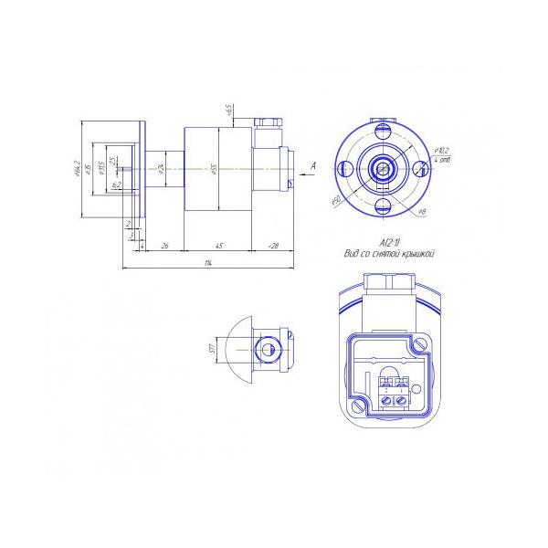 Датчик контроля положения задвижки (Датчик) предназначен для преобразования вращательного движения вала электропривода (ЭП) изготовленного по ТУ 26-07-1025-83 «Электроприводы с односторонней муфтой типов А, Б, В, Г, Д», в последовательность электрических импульсов, пригодных для дальнейшей обработки (например с помощью контроллера) с целью определения текущего положения задвижки. ДКЗ-1Г соответствует климатическому исполнению УХЛ для категории размещения 1 по ГОСТ 15150-69. Датчик изготавливается в корпусе из алюминиевого сплава. Крепление датчика к «Электроприводу» обеспечивается с помощью винтов (болтов) через отверстия во фланце. Для соединения с вторичным прибором (нагрузкой) ВТИЮ.7018 оснащен клеммным соединителем (под винт), расположенным в коробке на верхней грани корпуса. Гермоввод клеммной коробки обеспечивает надежное уплотнение ввода кабеля ø 4,3 … 6,3 мм. Клеммный соединитель допускает подключение провода сечением 0,5…1,5 мм2.