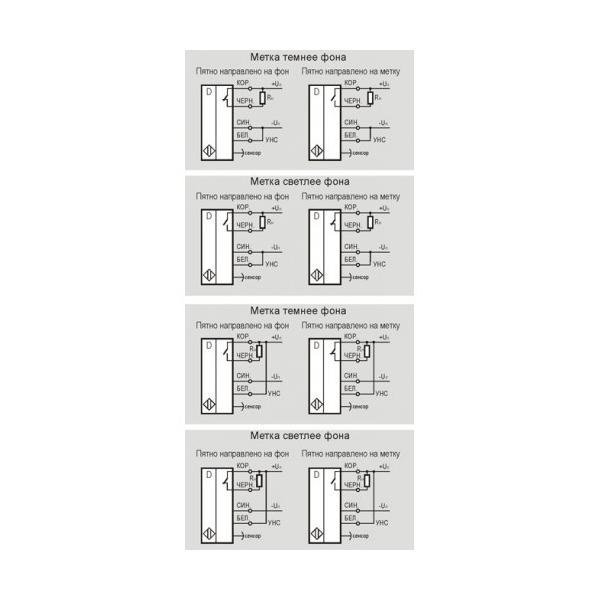 Датчик метки ODR A44A5-49N-25C2-LE предназначен для обнаружения контрастных и полиграфических меток на однотонных поверхностях контролируемых объектов и для управления устройствами промышленной автоматики. Датчик имеет излучатель и приёмник, встроенные в корпус. Луч света от излучателя, отражаясь от объекта, попадает в приёмник датчика. В зависимости от отражательной способности элементов поверхности объекта, состояние выходного ключа датчика изменяется.