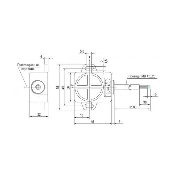| Выходной ток по каждой оси, мА., при отклонении, (°) | 4 (-90°)...12 (0°)...20 (90°) |
