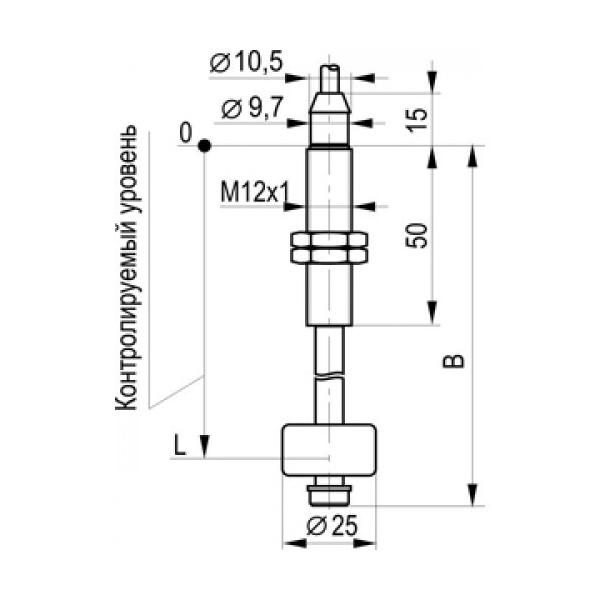 Датчик уровня DUG2-70-1 предназначен для контроля уровня жидкости (ρ≥75О кг/м³) и управления исполнительными устройствами. Датчики предназначены для работы во взрывобезопасной среде, не содержащей агрессивных жидкостей, газов и паров в концентрациях, приводящих к коррозии металлов. По способу защиты от поражения электрическим током датчики соответствуют классу I по ГОСТ Р МЭК 536. Датчик обеспечивает переключение контактов геркона при уровне жидкости ниже или равном контролируемому уровню. Возможно изменение контролируемого уровня жидкости относительно плоскости крепления датчика, а также корректировка уровня в зависимости от плотности жидкости смещением крепежных гаек в пределах ±15 мм.