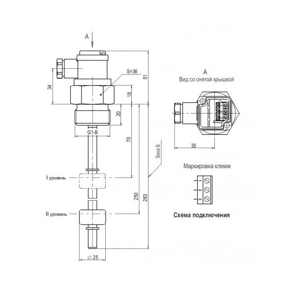 Датчик уровня MS ZDU.000-57 предназначен для контроля уровня жидкости и управления исполнительными устройствами. Сертификат соответствия № TC RU C-RU.АД06.В.00220 от 02.08.2016 г. Замыкание контактов геркона I уровня при уровне жидкости выше или равном верхнему контролируемому уровню (70 мм). Замыкание контактов геркон II уровня при уровне жидкости ниже или равном нижнему контролируемому уровню (250 мм).