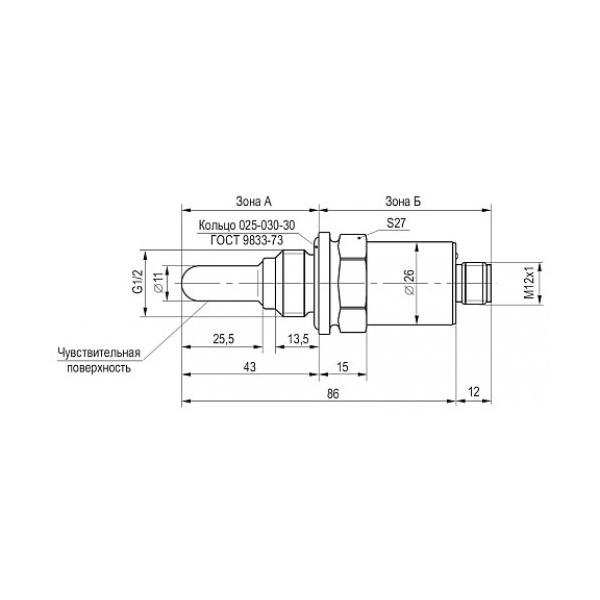 | Кратковременное (до 60 мин.) давление со стороны чувствительной | 500 кПа |