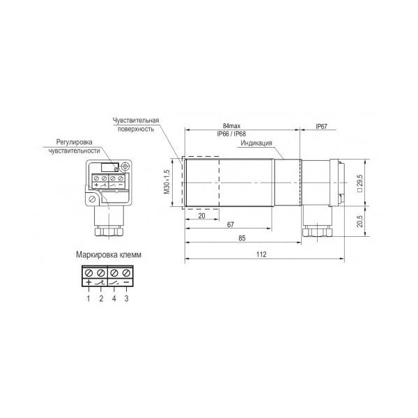 | Размер корпуса, ДxШxДл | M30x1,5x112 |
