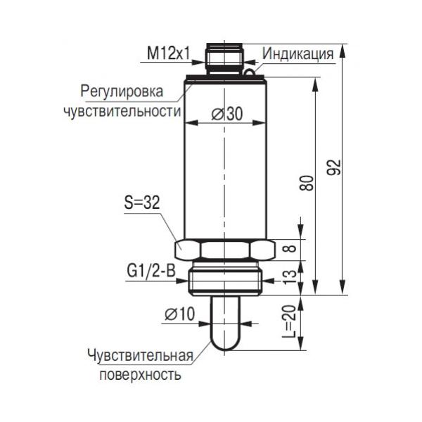 | Уровень срабатывания, Hr1 (вода) | 0...20 мм |