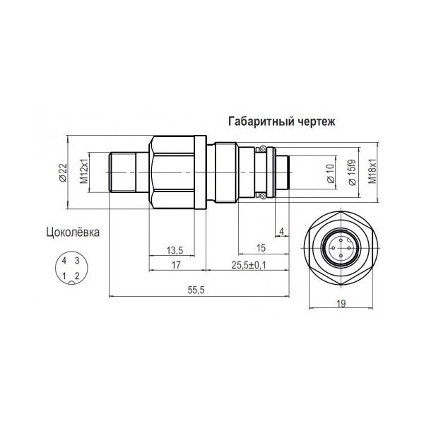 | Размер корпуса, ДxШxДл | M18x1x55,5 |