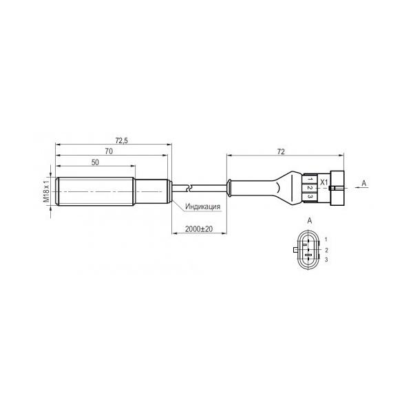 | Размер корпуса, ДxШxДл | M18x1x72,5 |
