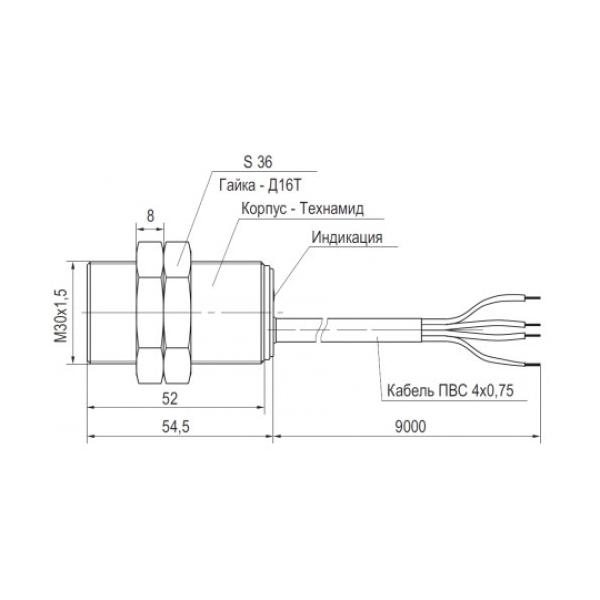 | Размер корпуса, ДxШxДл | M30x1,5x54,5 |
