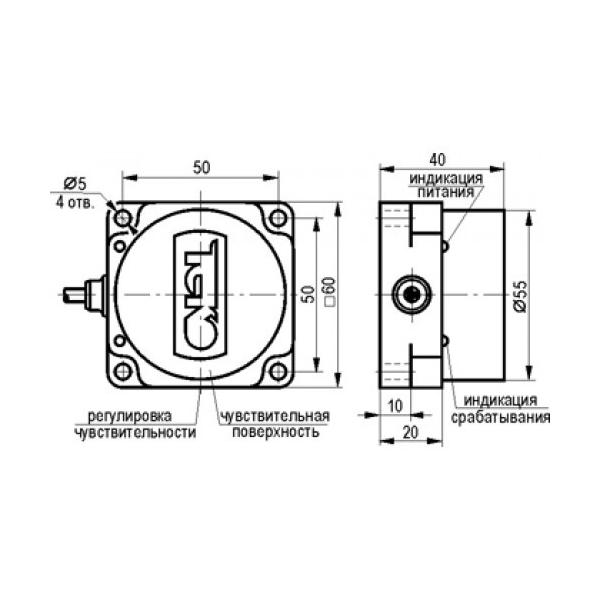 | Размер прямоугольного корпуса, ДлxВxШ | 60х60х40 |