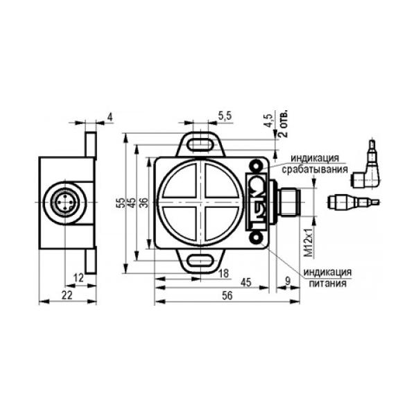 | Размер прямоугольного корпуса, ДлxВxШ | 55х47х22 |