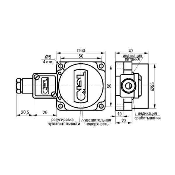 | Размер прямоугольного корпуса, ДлxВxШ | 110х60х40 |