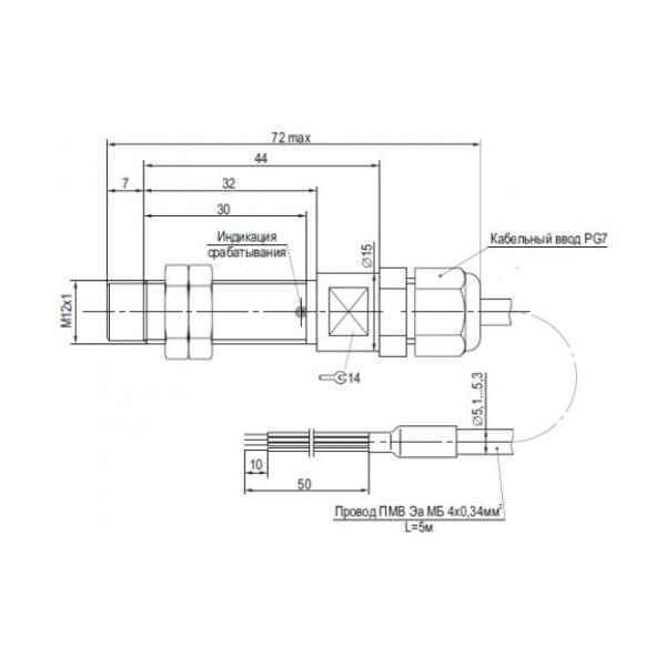 | Размер корпуса, ДxШxДл | M12x1x72 |