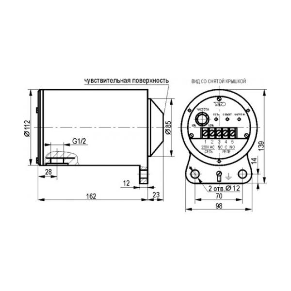 Датчик контроля минимальной скорости ВТИЮ.1345 (аналог Ramsey model 60-23P) предназначен для контроля скорости вращения электродвигателей дозаторов, барабанов конвейеров, ленточных и ковшовых транспортеров. Может использоваться для контроля аварийного проскальзывания ленты на транспортёре. Датчик контроля минимальной скорости является бесконтактным индуктивным выключателем со встроенной схемой контроля частоты импульсов воздействия управляющего объекта на этот датчик. При снижении частоты воздействия ниже установленной, датчик отключает нагрузку на нормально разомкнутом контакте (NO) и включает нагрузку, подключенную к нормально замкнутому контакту (NC) . Необходимое значение минимальной частоты устанавливается с помощью подстроечного резистора. Датчик обеспечивает задержку при первоначальном включении, необходимую для разгона механизма после подачи питания и достижения заданной частоты следования импульсов воздействия. Величина задержки постоянная для данного типа датчиков и равна tвкл = 9±2 с.