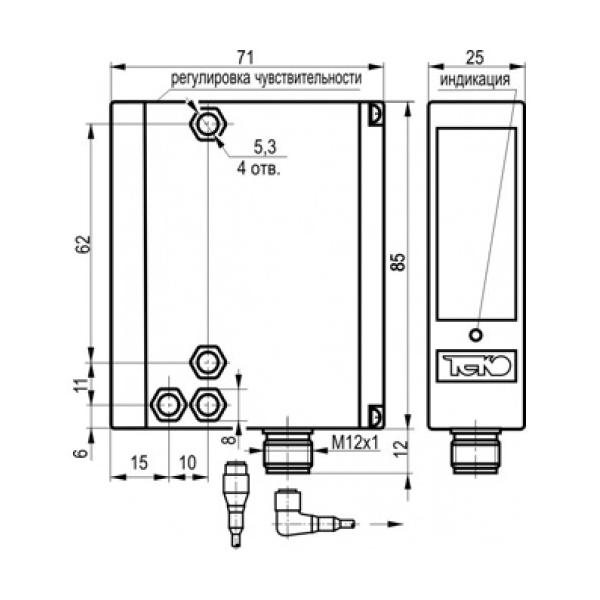| Размер прямоугольного корпуса, ДлxВxШ | 71x85x25 |