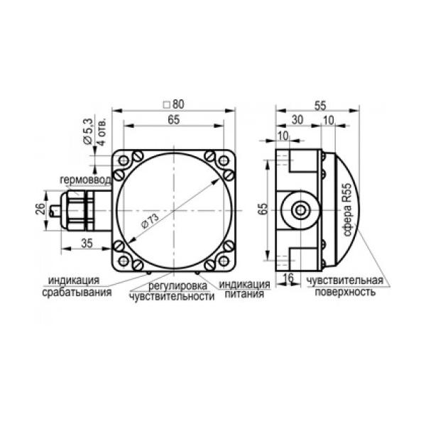 | Размер прямоугольного корпуса, ДлxВxШ | 80x80x55 |